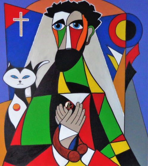 Rechts van Christus een kat.